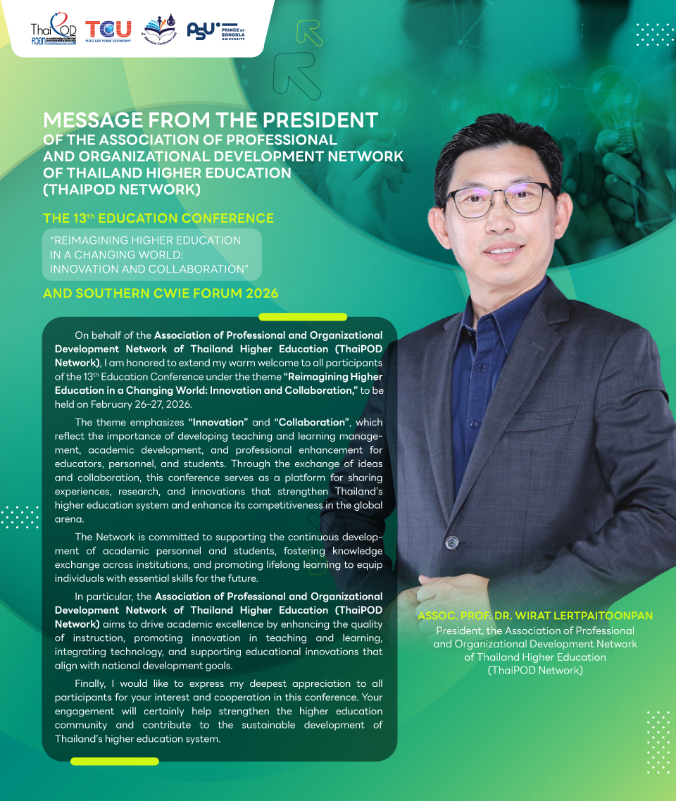 Message from the President of Professional and Organizational Development Network of Thailand Higher Education (ThaiPOD Network)